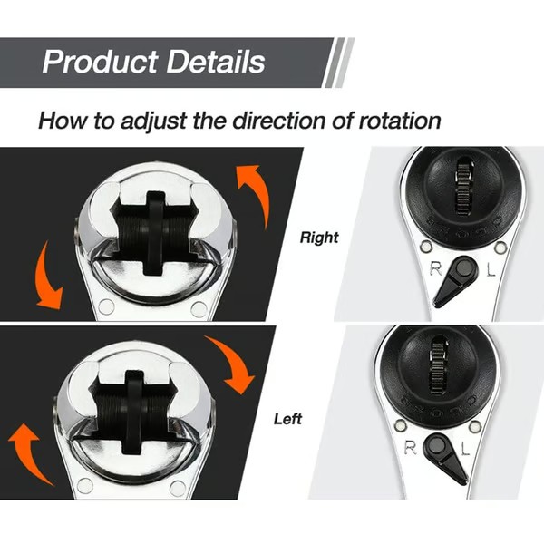 Large Torque and Good Performance Universal wrench quick release mechanism and quick stripping function; handle for additional control and power, delicate knob and direction adjustment paddle. The size of the ratchet wrenches can be easily adjusted according to your needs.